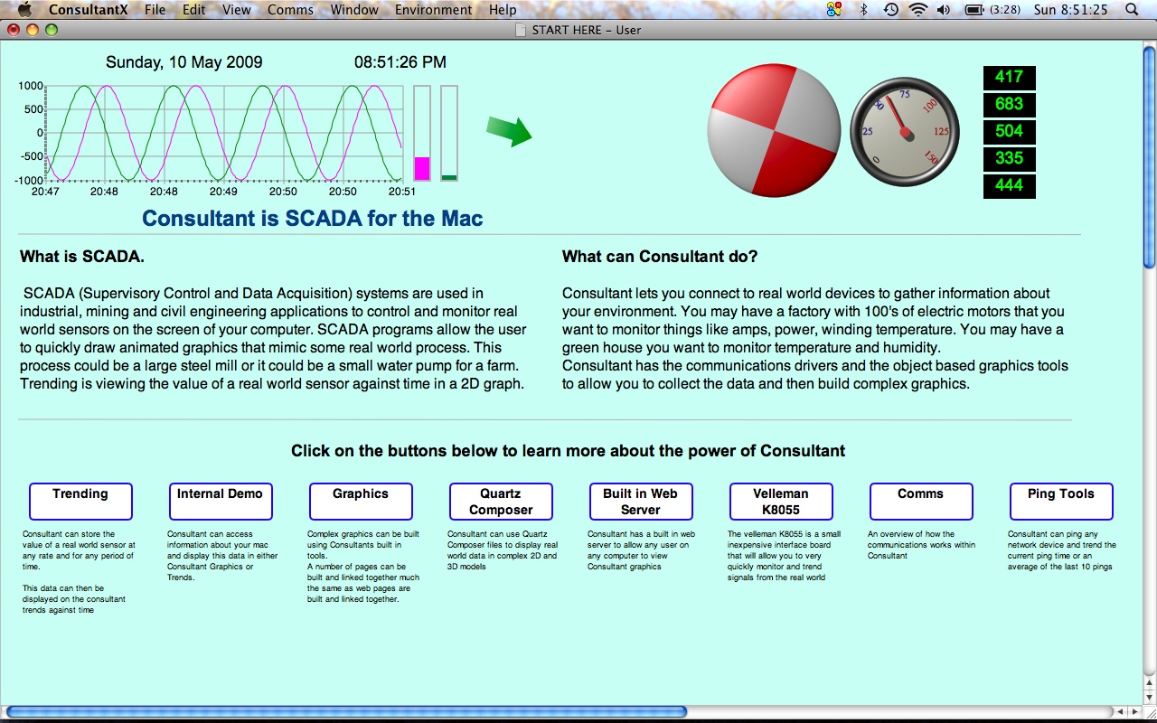 ConsultantX is a full featured SCADA application for MacOSX 10.6 and later